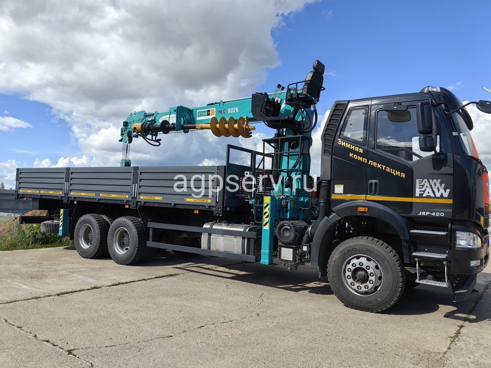 Автомобиль бортовой на шасси FAW 6х4 c КМУ HKTC-8026А с буровой установкой